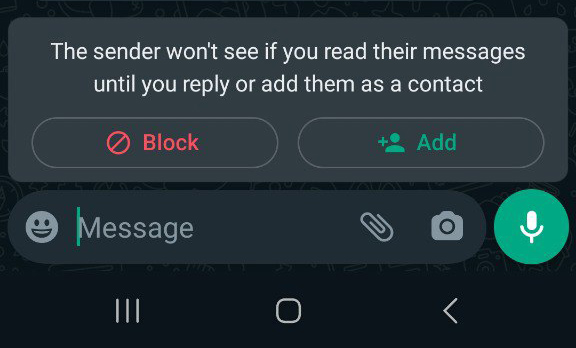 That is, he will read it, but WhatsApp will show him a notification that says the following: *"The sender won't see if you read their messages until you reply or add them as a contact"*
