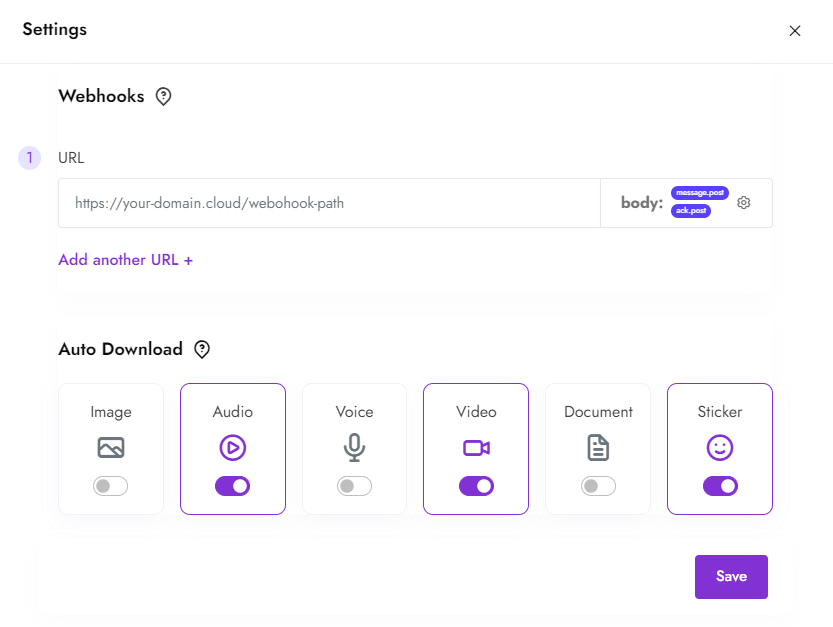 <figure><img src="https://2417185145-files.gitbook.io/~/files/v0/b/gitbook-x-prod.appspot.com/o/spaces%2FhsdgGmVCG31mEaHyRvxC%2Fuploads%2F1RHBBegI0fC7fwnZ49vI%2Fautodownload.png?alt=media&#x26;token=6253f776-b6e2-47a2-9eea-2be7db2bd2e3" alt=""><figcaption><p>With this setting, the hook will have a "link" field that will store the url to the file.</p></figcaption></figure>